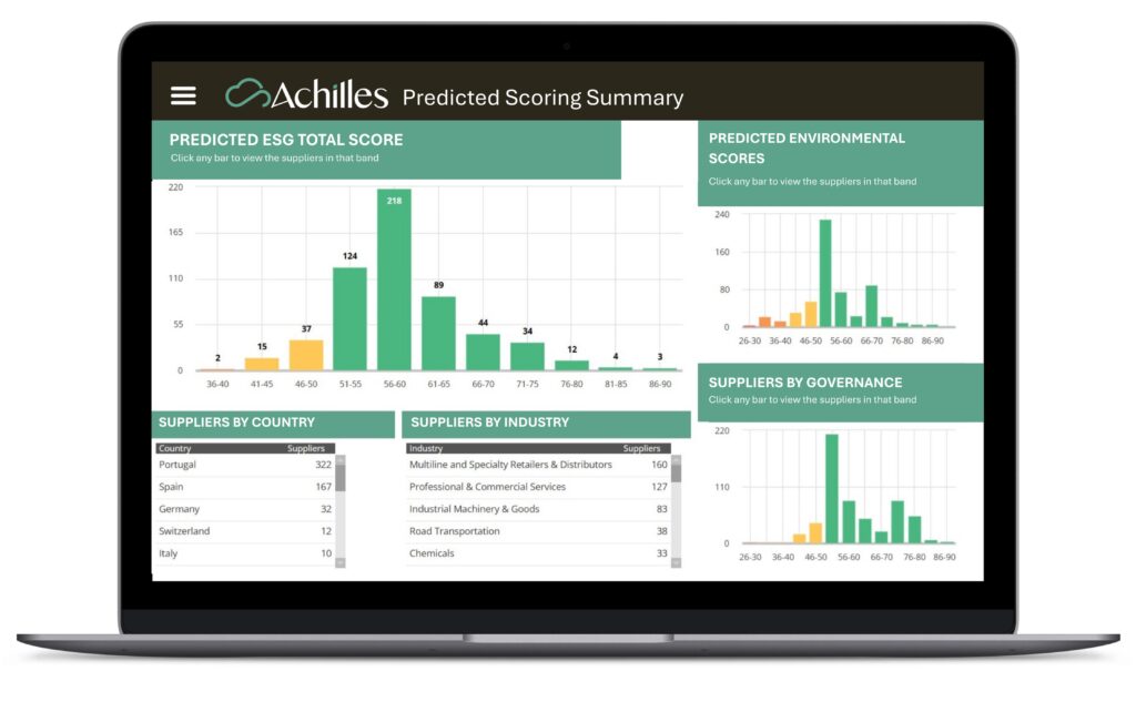 AchillesAI Predictive Scoring consente ai clienti di applicare un approccio basato sul rischio alla due diligence ESG sull’intera base fornitori. Grazie ad analisi tempestive sviluppate sull’analisi dei dati, la soluzione mostra dove è più probabile che emergano rischi significativi, aiutando i team a decidere dove concentrare l’attenzione, a quali fornitori dare priorità per valutazioni più approfondite e quando agire, anche prima dell’onboarding.