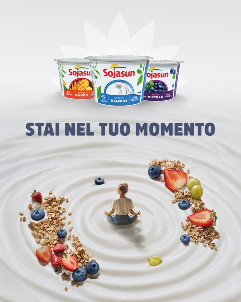In un mercato delle alternative vegetali sempre più competitivo, parlare solo di salute non basta più. I consumatori oggi cercano esperienze che siano personali, appaganti e capaci di nutrire non solo il corpo, ma anche la mente. È da questo insight e dall’analisi dei trend, che nasce “Stai nel tuo momento”, il nuovo concept creativo ideato dall’agenzia, che trasforma lo yogurt vegetale in un vero e proprio giardino zen, in cui concedersi una pausa consapevole.